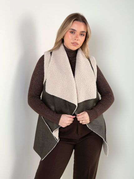 Colete efeito pelo encaracolado com bolsos