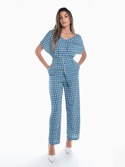 Macacão comprido estampado geométrico