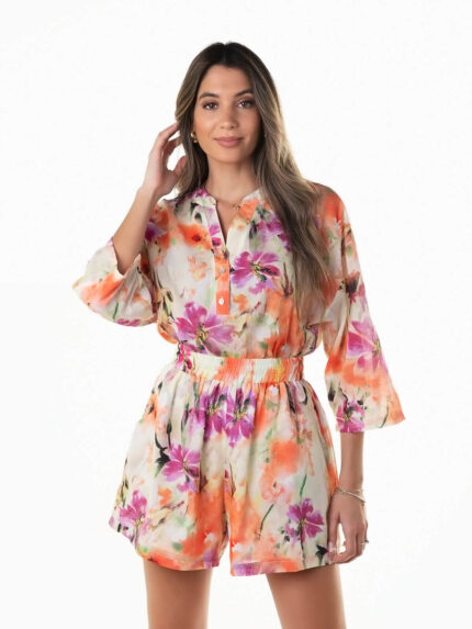 Conjunto floral blusa e calções