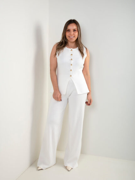 Conjunto em malha com colete e calças