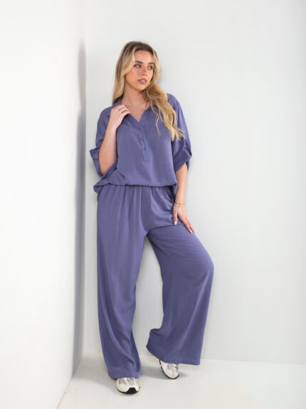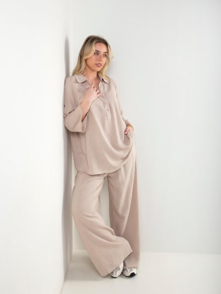 Conjunto efeito linho blusa e calças
