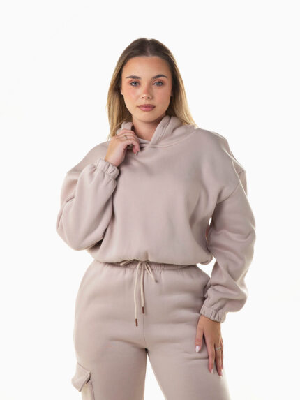 Sweatshirt capuz cropped com elástico