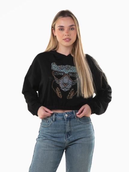 Sweatshirt capuz curta com brilhos