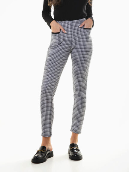 Leggings xadrez cintura alta com bolsos