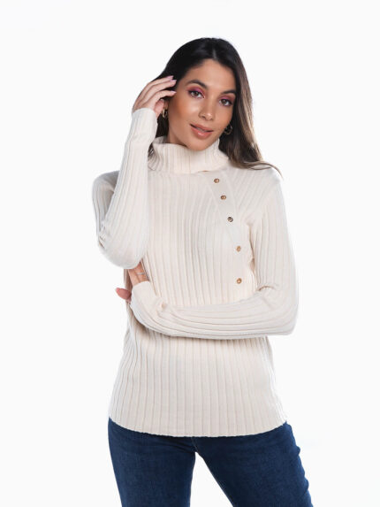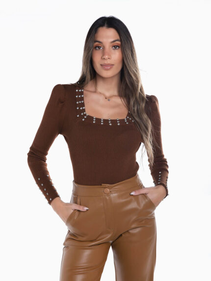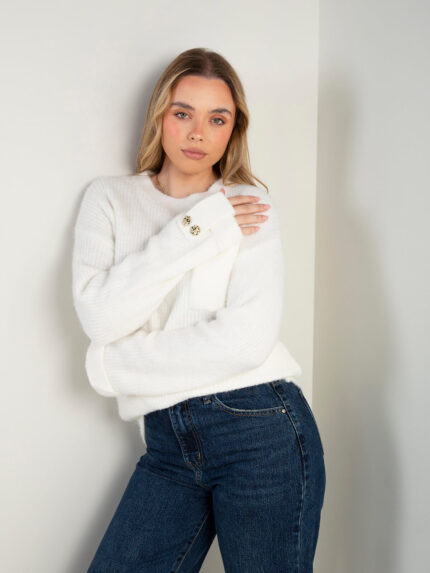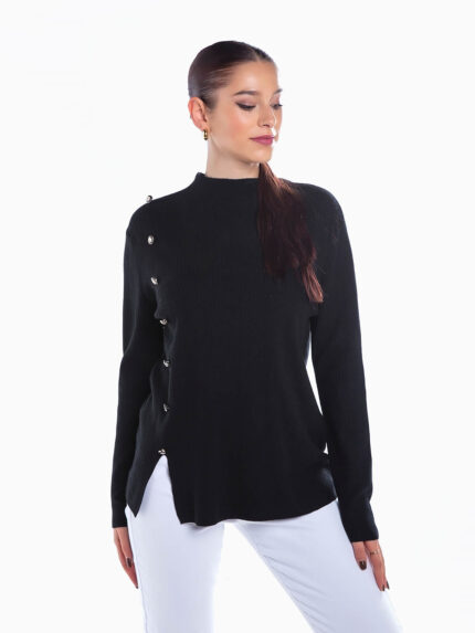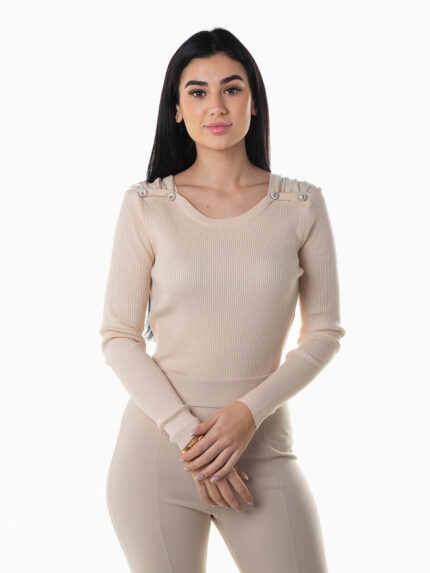 Camisola malha canelada botões brilhantes