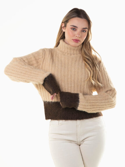 Camisola malha canelada bicolor