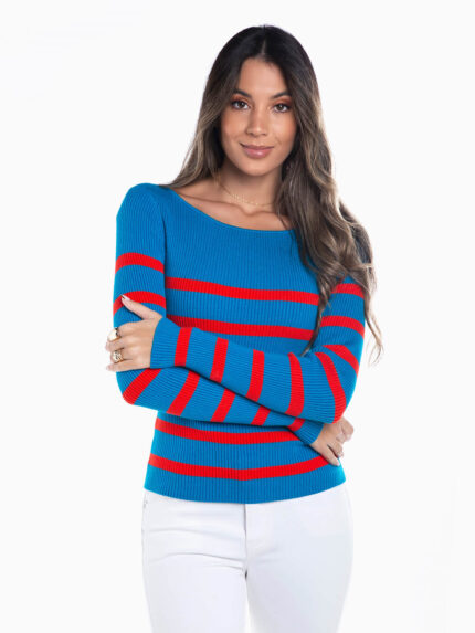 Camisola malha canelada às riscas