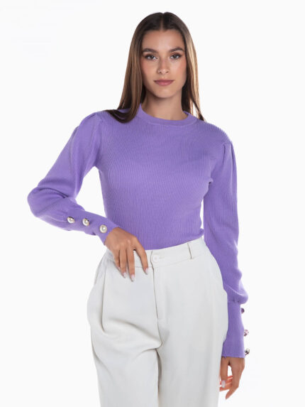 Camisola malha canelada com pérolas