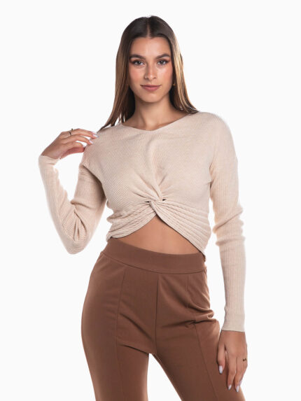 Camisola malha canelada com nó