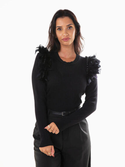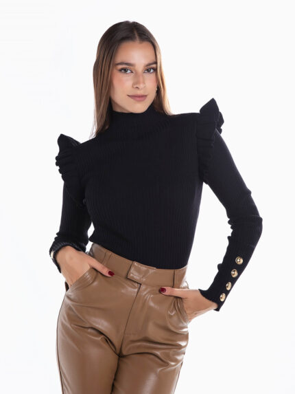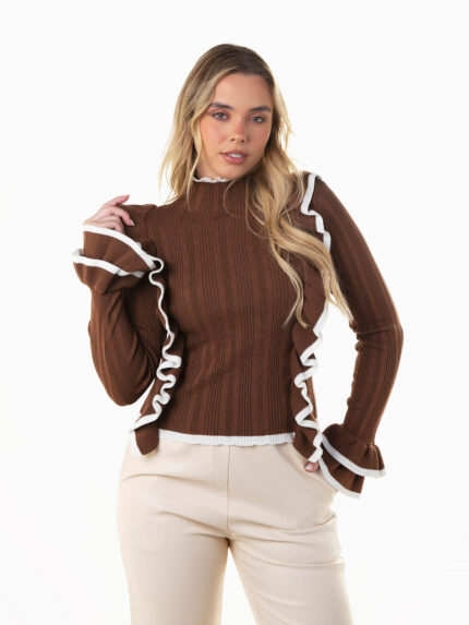 Camisola malha canelada com folhos