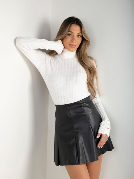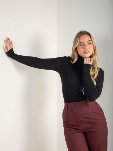 Camisola malha canelada com gola alta