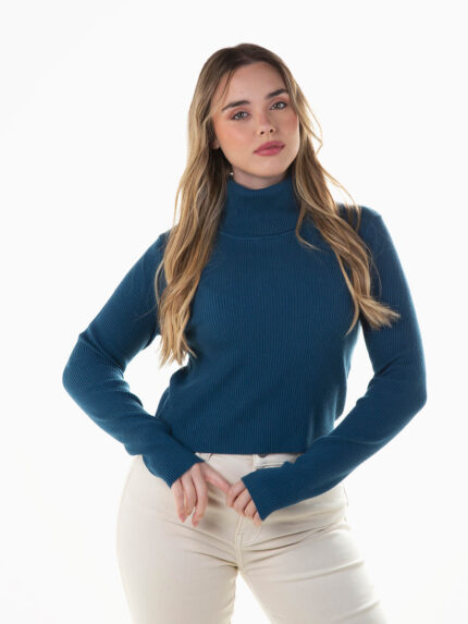 Camisola malha canelada gola alta dobrada