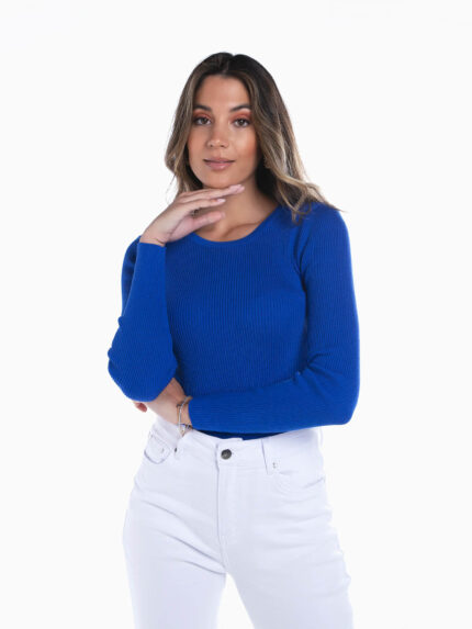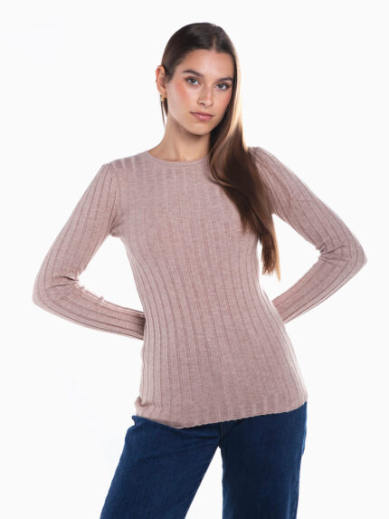 Camisola malha canelada decote redondo