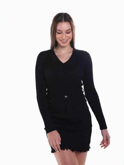 Camisola malha canelada em V