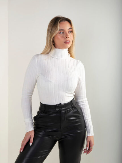 Camisola malha canelada gola alta
