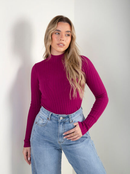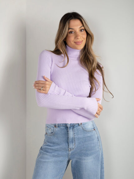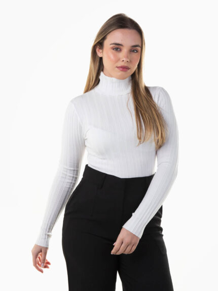 Camisola canelada com gola alta