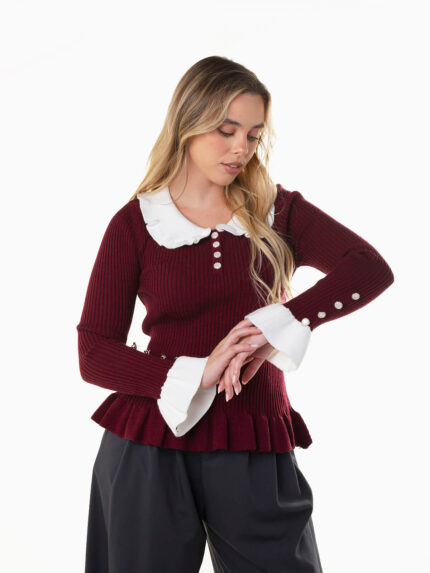 Camisola canelada gola perkins e botões
