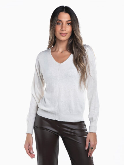 Camisola malha mistura seda em V