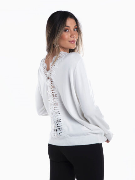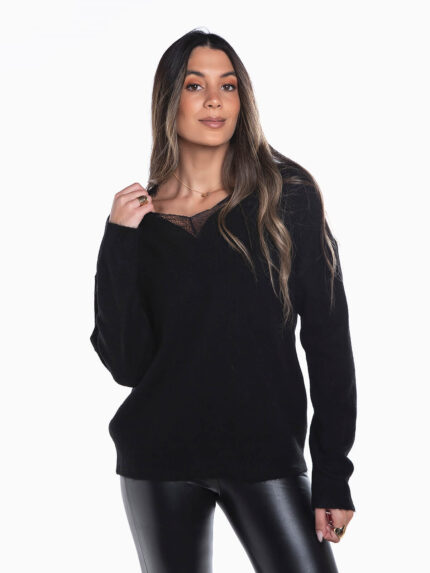 Camisola malha mesclada com renda