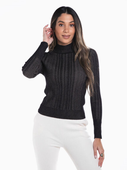 Camisola malha mistura viscose gola alta
