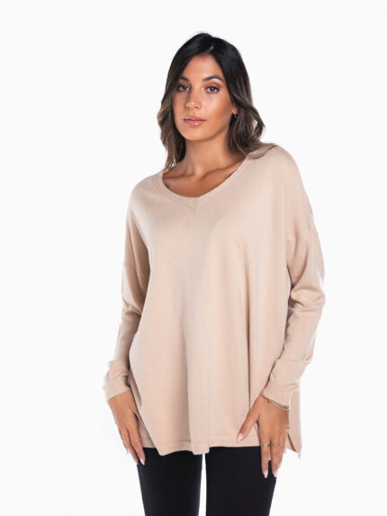 Camisola malha oversize bege claro