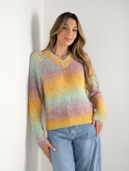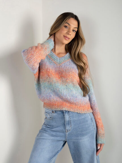 Camisola malha multicolor em V