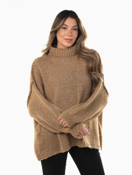 Camisola malha oversized com gola subida