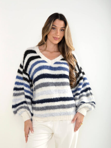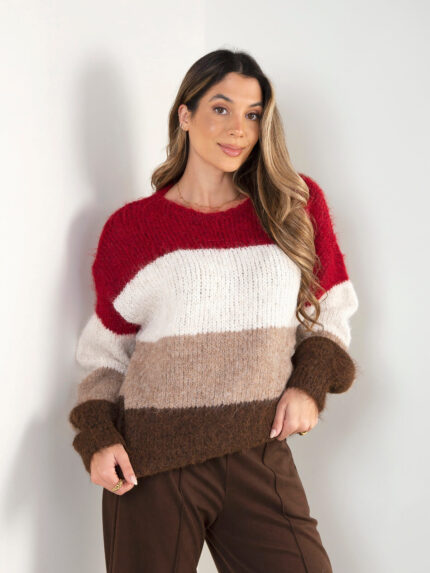 Camisola malha oversized color block em V