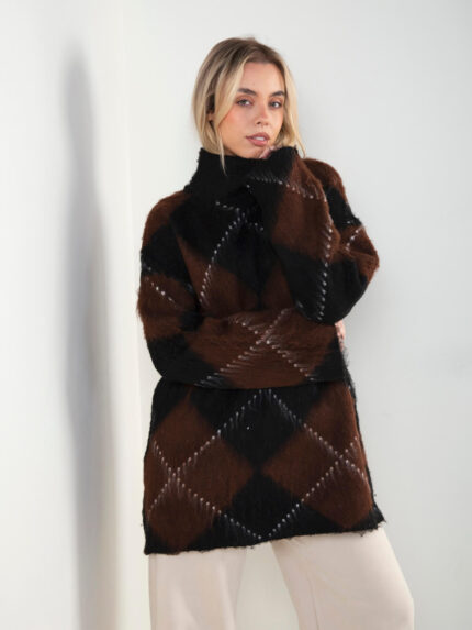 Camisola malha oversized com losangos
