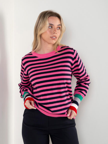 Camisola malha riscas punhos contrastantes