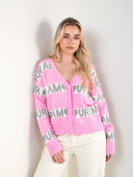 Casaco malha rosa com padrão contraste
