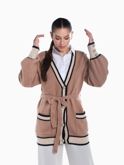 Cardigan comprido com cinto