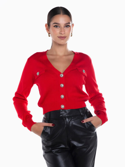 Cardigan curto botões joia