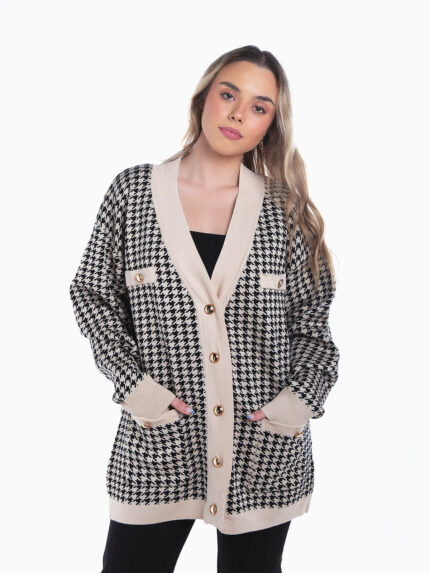 Cardigan comprido pied-de-poule