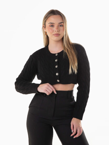 Cardigan cropped malha trançada