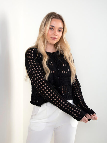 Cardigan de malha perfurada