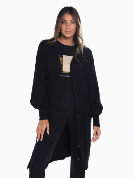 Casaco de malha comprido manga abalonada
