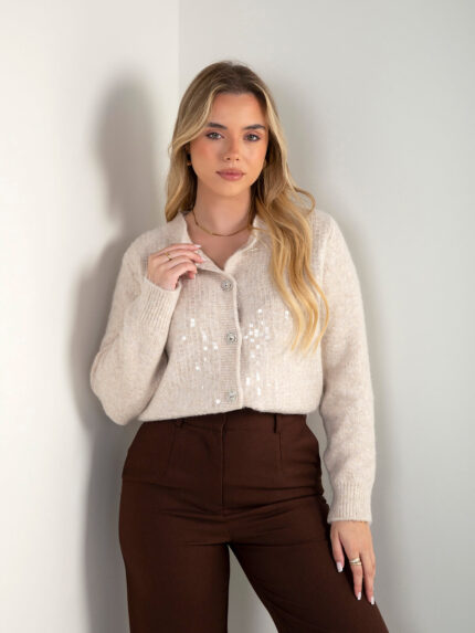 Casaco de malha com lantejoulas