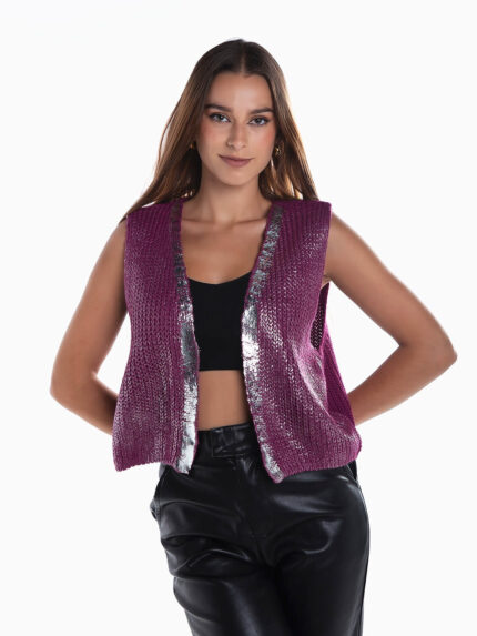 Colete curto aberto malha brilhante