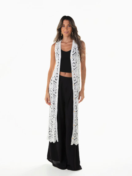 Colete comprido em crochet