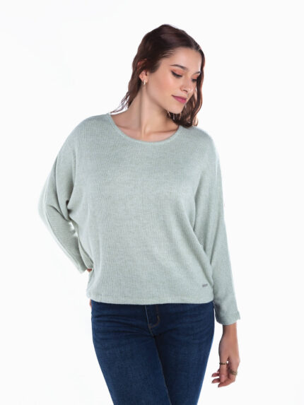 Camisola malha canelada manga morcego