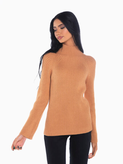 Camisola malha canelada gola alta dobrada