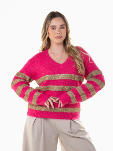 Camisola malha com riscas douradas