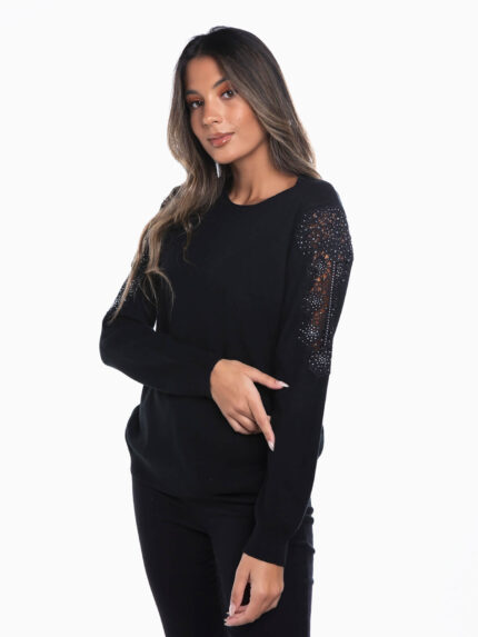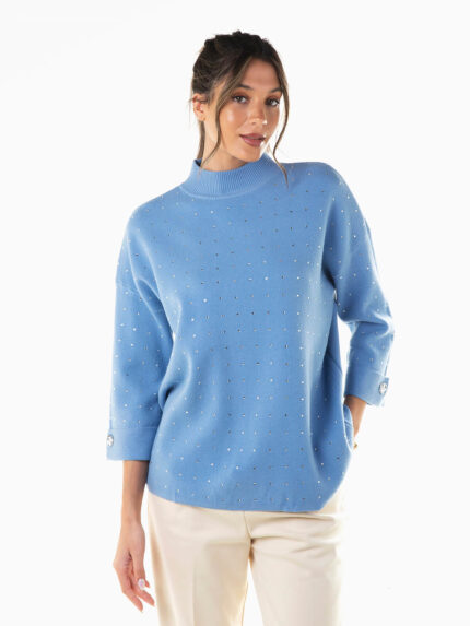 Camisola malha com strass manga 3/4