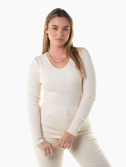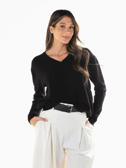 Camisola malha estruturada em V