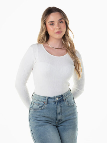 Camisola malha estruturada decote redondo