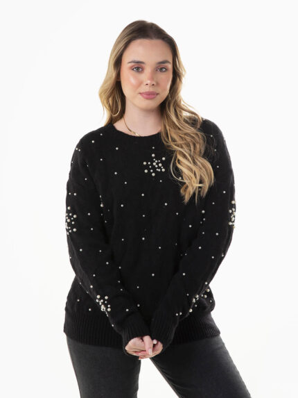 Camisola malha estruturada com pérolas
