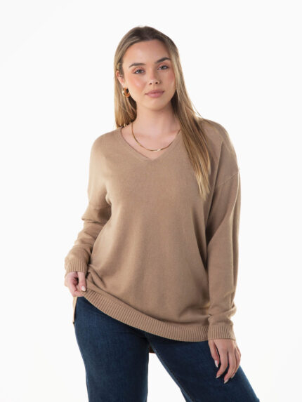 Camisola oversize malha em V