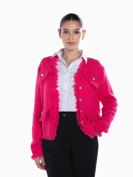 Casaco malha acabamentos desfiados