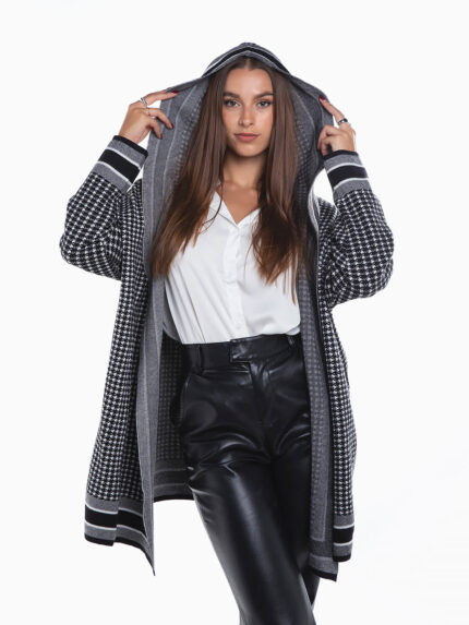 Casaco malha aberto pied-de-poule